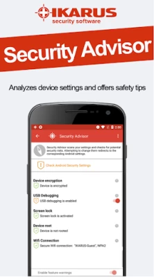 IKARUS mobile.security – protects your smartphone or tablet reliably against malware infections in the apps as well as from the Internet. Find and remove viruses, trojans, spyware, adware and other malware.