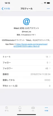 公式アカウント: @imast_ios@mstdn.rinsuki.net https://mstdn.rinsuki.net/@imast_ios