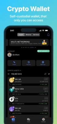 - Custom DeFi Tools: Send crypto to addresses, QR codes, or directly in chats, send invoices for quick payments, staking, and Crypto Boxes for coins and tokens.