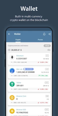 • Crypto wallet for Ethereum and Binance Smart Chain accounts for storing, purchasing and transferring cryptocurrencies;