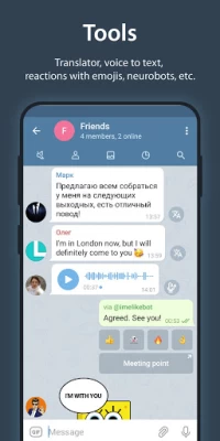 • Translation of voice messages up to 1 minute into text;