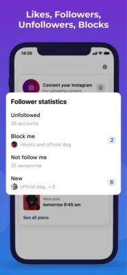 Managing your Instagram profile with InTools is fast and easy. Track unfollowers and blocks. Plan and publish all posts on time! No delay with InTools!