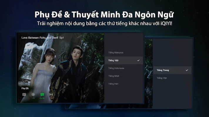 Nội dung độc quyền hấp dẫn chỉ trên iQIYI mới có? Chính xác! Muốn xem phim trên iQIYI lại lo lắng không hiểu được nội dung? Chúng tôi đã kỳ công chuẩn bị phụ đề tiếng Việt cho bạn! Mở chế độ xem toàn màn hình là có thể chọn phụ đề tiếng Việt, không cần đi tìm vietsub nữa!