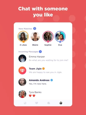 • There is nothing so substantial or safe in life as the simple truth. Honesty and authenticity in the Jigle community are values we deeply care about. That's why we verify the authenticity of our users via different methods such as AI, photo proof, and another state of art technologies. Jigle always gives priority to verified profiles.