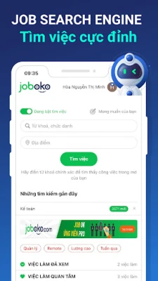 Ứng dụng Joboko - Nền tảng công nghệ kết nối việc làm hiệu quả. JobOKO được áp dụng nhiều công nghệ mới như Job Search Engine, công nghệ gợi ý việc làm bằng trí tuệ nhân tạo, giúp cung cấp cho ứng viên công việc từ các nhà tuyển dụng uy tín, phù hợp với nhu cầu.