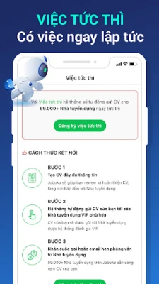 Việc làm tức thì: Nếu bạn muốn có việc nhanh nhất, bật tính năng này và được kết nối sớm nhất với nhà tuyển dụng phù hợp.