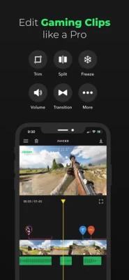 Juiced is an advanced video editor that lets you edit and download game clips like a pro. This free video editor app is available to gamers and content creators on all gaming platforms including Xbox, Playstation, Nintendo, and Twitch. Below are some of the top features: