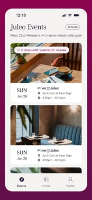 Imagine an exclusive Gymkhana/Country Club, with a community of trusted Govt ID verified Members who are all Single, no fixed clubhouse (you can instead meet all over town at reputed venues) and a personal Matchmaking Genie who helps you land great meetings with other Members who are your type. Say b’bye to endless swiping and welcome to Juleo!