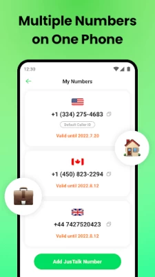 JusTalk 2nd Phone cung cấp cho bạn các số thực ở các quốc gia khác nhau với mức giá thấp, bạn có thể chọn số US, số GB, v.v. Nhận số thứ 2 và thực hiện các cuộc gọi điện thoại, tin nhắn văn bản thực và miễn phí ngay bây giờ.