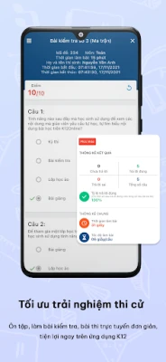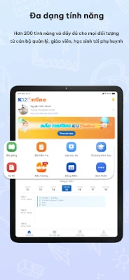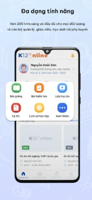 Kết hợp cùng với phiên bản web sẵn có, ứng dụng K12Online có thể giúp cán bộ quản lý cấp Sở/Phòng/trường theo dõi và sử dụng các tính năng cần thiết để hỗ trợ công tác quản lý, dạy học và kiểm tra của đơn vị.