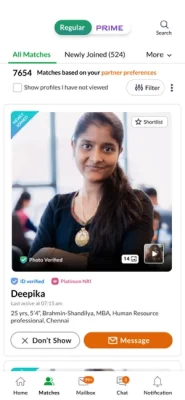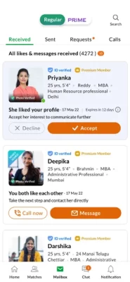 • Access KannadaMatrimony “Prime” - get genuine profiles that are government ID-verified.