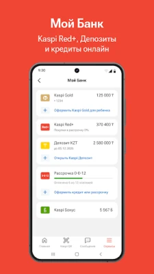 • Оформление Kaspi Gold, Kaspi Gold для ребенка, Kaspi Red, кредитов и депозитов прямо в приложении