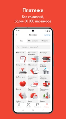 • Оплата без комиссий более 10 000 самых разнообразных услуг, включая мобильный, интернет и ТВ, коммуналка, налоги, штрафы, билеты, транспортные карты, платные дороги, парковки и многое другое