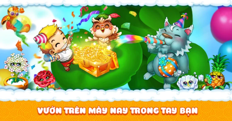 Khu vườn trên mây ZingPlay tái hiện thế giới thần tiên tương tự như game Hay Day , Township , Farmville 2 , Big Farm ,.. ngay trên tay bạn. Một nông trại trên mây yên bình và giản dị cùng các nhân vật cổ tích đáng yêu.