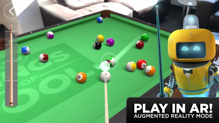 Với AR, bạn có thể tạo ra một bàn chơi có kích thước thật trên mọi bề mặt. Chế độ này đặc biệt có cơ chế vật lý của bi chân thực và đồ họa 3D sống động. Chế độ AR hoàn toàn có thể tùy chỉnh bằng cách sử dụng bảng tùy chỉnh được thao tác trên lớp nỉ và decal của bàn chơi.