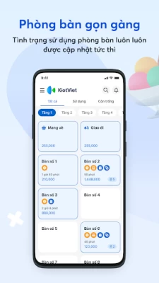 Giúp bạn kiểm soát việc đặt phòng/ bàn, nắm bắt chi tiết thông tin từng phòng/bàn trong quán