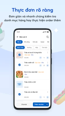 chọn món cho khách ngay trên máy tính bảng/điện thoại. Các thông tin gọi món của khách hàng