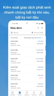 Giúp bạn nắm bắt chính xác, đầy đủ tình trạng giao dịch của từng đơn hàng, tại từng chi nhánh theo thời gian thực (cập nhật ngay khi giao dịch diễn ra). Giảm thiểu các thất thoát do nhầm lẫn, gian lận.