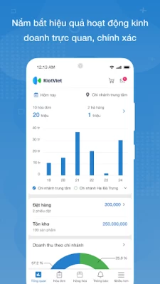 Ứng dụng giúp bạn dễ dàng theo dõi, giám sát hoạt động bán hàng của các chi nhánh, đồng thời giúp bạn so sánh đánh giá hiệu quả kinh doanh của mỗi chi nhánh trong hệ thống.
