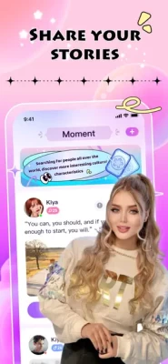 Kiya offers many fun ways to help you interact with our community: Upload photos directly from your phone library, follow to stay connected with your favorite friends, send messages or gift to your friends to make your conversation more fun.