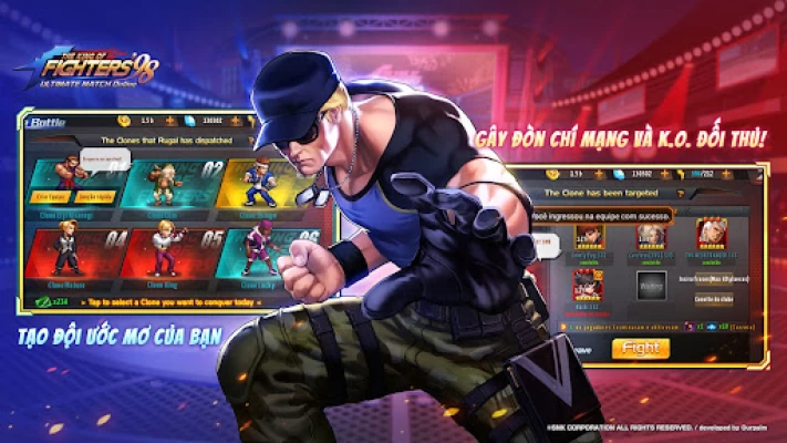 Hãy cùng lao vào trận chiến huyền thoại và tận hưởng trò chơi! Trò chơi hành động hoành tráng "King of Fighters" đã có mặt trên di động với giao diện hoàn toàn mới!