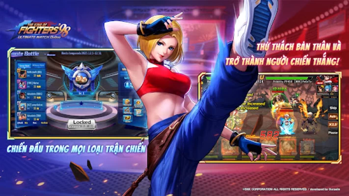 Chiến đấu theo cách của bạn thông qua chiến dịch hơn 70 cấp độ theo cốt truyện kinh điển của trò chơi và vô số chế độ thử thách PVE. Đối đầu với người chơi từ khắp nơi trên thế giới trong nhiều chế độ và giải đấu PVP khác nhau, để cuối cùng giành được danh hiệu “King of Fighters”!
