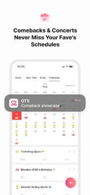 - Theo dõi lịch trình của thần tượng - comeback, concert, fan meeting, sinh nhật, kỷ niệm, chương trình âm nhạc và phát hành bài hát.