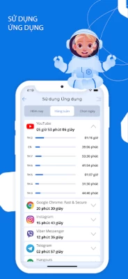 Ứng dụng kiểm soát của phụ huynh dành cho Android với mục đích bảo vệ trẻ em và cung cấp khả năng giám sát, giúp giữ an toàn cho trẻ em khi trực tuyến. Đây là ứng dụng kiểm soát trẻ em mạnh mẽ với tính năng theo dõi thời gian sử dụng thiết bị, theo dõi vị trí, theo dõi thời gian sử dụng ứng dụng, giới hạn sử dụng ứng dụng, giới hạn sử dụng điện thoại, kiểm soát trang web, giám sát YouTube. Bạn có thể chặn ứng dụng, đặt giới hạn thời gian ứng dụng hàng ngày, giới hạn thời gian sử dụng thiết bị, chặn nội dung không phù hợp.