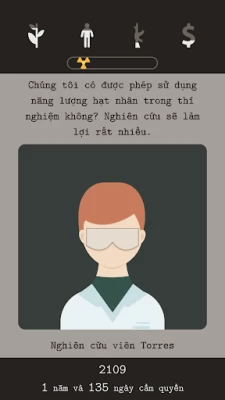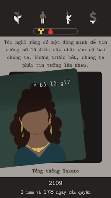 • Làm sao để chơi? Nhấn giữ và đẩy nhẹ lá bài sang phải hoặc trái để đọc hai lựa chọn khả thi. Chọn quyết định mà bạn muốn, để ý đến bốn thứ nguồn lực. Hãy nhớ rằng: mọi quyết định sẽ đều đưa đến những kết quả ở tương lai.