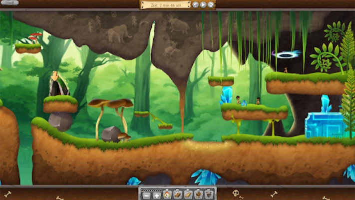 The cavemen are searching for a cozy home that offers safety and comfort. But the path is filled with dangers, obstacles, and surprising challenges. Using a mix of skill, strategy, and creativity, your task is to help the cavemen on their journey. They will need to use tools such as parachutes, earth drills, and bazookas to overcome obstacles, build bridges, or jump from great heights. The goal is to get as many cavemen as possible safely to the finish and successfully complete their adventures.