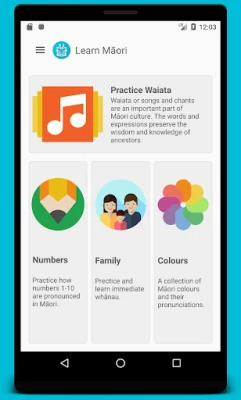 Your children can use this app to learn how basic numbers, colors, and family members are pronounced in Māori. Some of the important waiata are also included in the app.