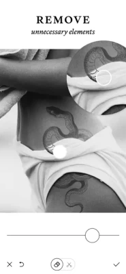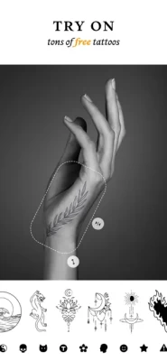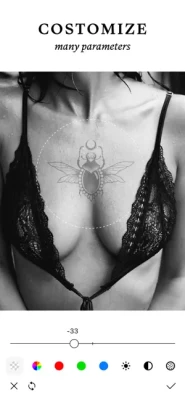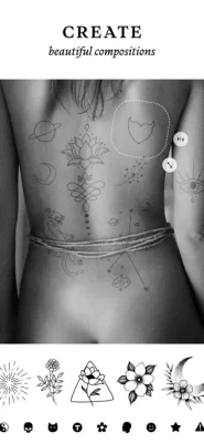 The app has many options for little tattoos - experiment and choose what you like best! These can be tattoos in the form of lines and lettering, hieroglyphs, animals and fish, flowers and much more. Also create a tattoo from any of your own images.