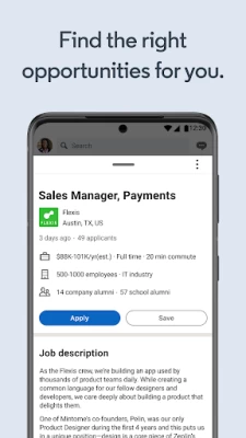 Get business insights before you apply for the job, including company information and job responsibilities. Then quickly and safely apply to any position through the LinkedIn app with your resume or professional profile.
