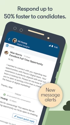 Use the LinkedIn Recruiter app to stay on top of your recruiting when you’re on-the-go. Quickly respond to candidates as soon as they reply to your messages. Search LinkedIn’s entire network of 675M+ members and contact the right people for your open roles — all from your phone. Pick up work where you left off or take care of quick tasks when you’re away from your desk, like reviewing candidate profiles or organizing your pipeline.