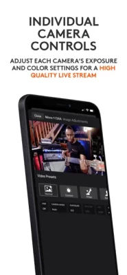 Adjust each Mevo camera’s exposure and color settings for a high quality live stream.