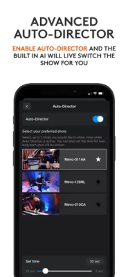 Toggle auto-director and the built in AI will live switch the show for you.