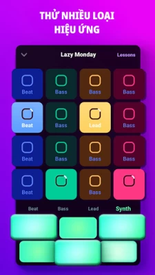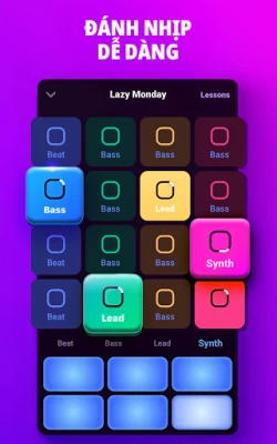 Hãy khởi chạy trình tạo nhạc và học cách tạo nhịp điệu hay. Loop Maker Pro sẽ hướng dẫn bạn tất cả các bước để tạo nhạc từ A đến Z cũng như mọi thứ liên quan khác. Chỉ cần vào ứng dụng để bắt đầu, và bắt đầu chạm vào các phím nhịp điệu để phát ra những âm thanh hấp dẫn.