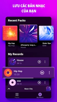 Bạn đã bao giờ muốn trở thành một DJ chuyên nghiệp và khiến đám đông chuyển động theo nhịp điệu của riêng bạn chưa? Giờ đây, bạn có thể làm điều đó! Hãy khởi chạy ứng dụng và sử dụng vòng lặp để hòa trộn các giai điệu đó. Chạm vào phím để chơi các nốt đó và tạo các bài hát mới của riêng bạn.