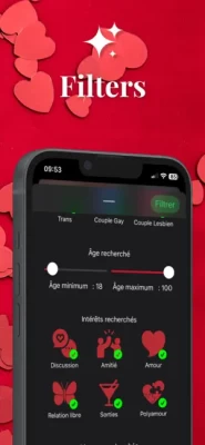 - Choose who you want to see and by whom you want to be seen, thanks to effective filters that navigate you to the profiles that match your search. (If a woman is not looking for a man, men will not see her!)