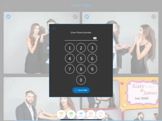 You can print your photos directly if you have a printer that supports AirPrint or to the printer connected to dslrBooth or LumaBooth. You can also add a disclaimer to be displayed to guests before they're allowed to share or print.