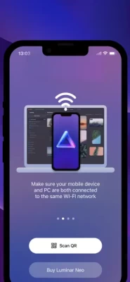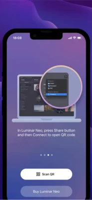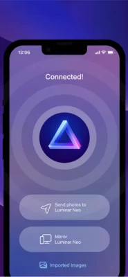 Luminar Share is an app that allows Luminar Neo users to transfer photos from desktop to mobile (and the opposite direction) wirelessly. It also makes it easy for users to share edited photos to their social media accounts.