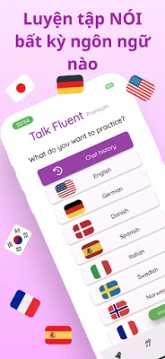 Hội thoại với AI: Luyện tập tiếng Anh với AI mô phỏng người bản ngữ để cải thiện phát âm, từ vựng và giọng điệu của bạn. Dù bạn đang gọi món ăn, giao tiếp xã hội hay chuẩn bị cho phỏng vấn, Talk Fluent vượt trội hơn các ứng dụng học ngôn ngữ khác với sự tập trung vào kỹ năng nói tiếng Anh thực tế.