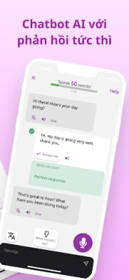 Mở rộng từ vựng và phát âm: Mở rộng vốn từ vựng tiếng Anh và luyện phát âm với phản hồi tức thì. Cải thiện giọng của bạn và nắm vững cách phát âm tiếng Anh Mỹ, tiến gần hơn đến trình độ của người bản ngữ.