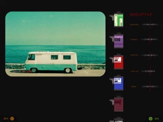 - After snap photo you can adjust and develop film photo by luzmo develop film function