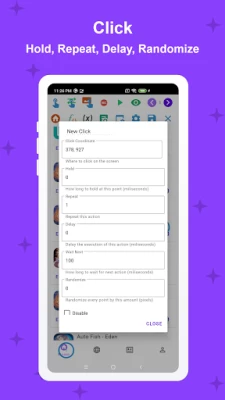 The app requires Accessibility Service to perform auto-clicking, paste text, press navigation button, etc. No data is collected or shared