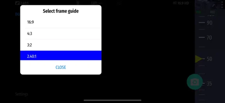 Magic ViewFinder simulates using tele adapters or anamorphic optics on your camera (see menu). From the menu you can also select the aspect ratio of the frame guide overlaying your image.
