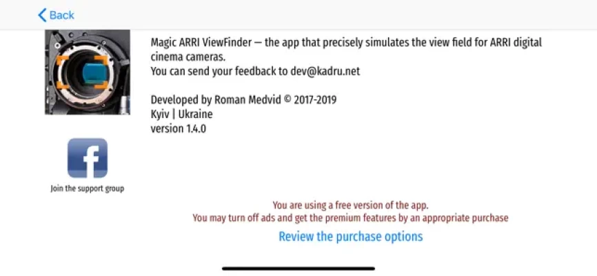 To activate additional settings (i.e. to use all available optical adapters and frame guides) and to turn off advertising, please subscribe to (Option #1) or purchase Premium Features (Option #2) in 'About the App' menu.