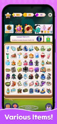 Merge various magic materials to create magic items. Merge mystical herbs in a glass vial into a magic potion! Merge parchment with the power of magic mushrooms to create a dark magic scroll. But no need to stop there...! Create beautiful magic costumes, colorful magic equipment, and even delicious magic food as well! How many different magic items can YOU create?