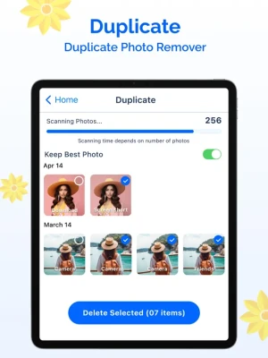 The photo album app's pictures manager makes it easy to find and remove duplicate pictures and videos. It uses AI technology to find duplicate photos & videos from albums.