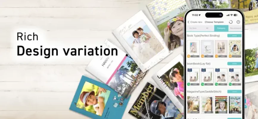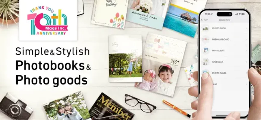 Thank you, it is the 10th anniversary!\Popular app to create a photo goods with over 200 kinds of templates/Choose templates, drag your photos, and easily create your unique photo book!